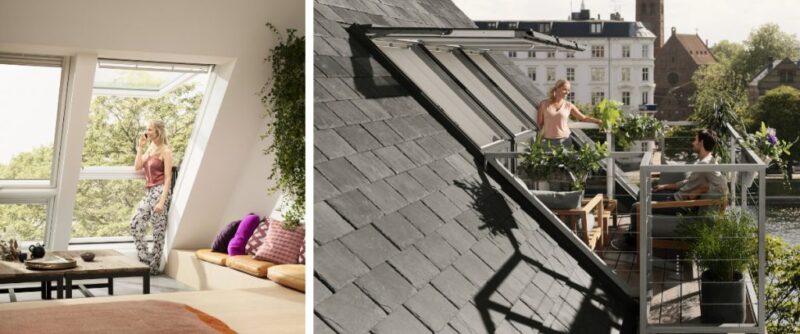 Bạn có thể tưởng tượng tận hưởng một ban công nhỏ hoặc sân thượng trên gác mái của bạn? Tận hưởng không gian ngoài trời từ bên trong gác xép nhờ vào ban công và cửa sổ sân thượng. Cửa sổ có nửa trên mở ra giống như cửa sổ mái truyền thống và có phần dưới như một ban công có lan can an toàn.